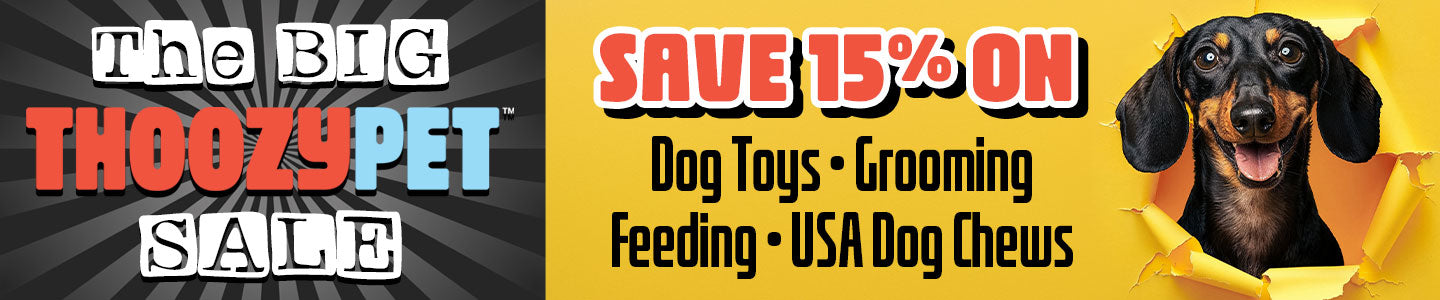 Save 15% on ThoozyPet dog toys, grooming products, bowls & feeders, and 100% USA–made dog chews.