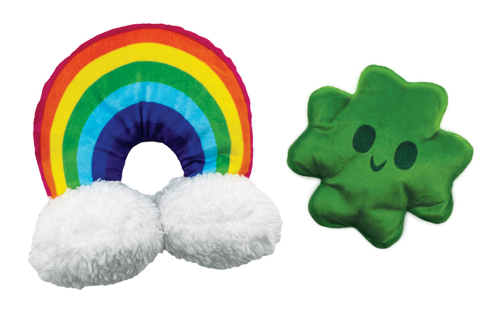 Pup O' the mornin' to ya! There's nothing like waking up to these lucky charms dog toys. Puppy Charms are made with two squeakers, long & strong hair, crazy crinkle, and lots of fluff to sweeten up playtime. Now that's a bang-on barkfest!
