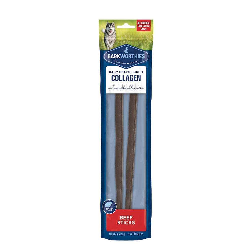 Barkworthies Collagen Beef Sticks Plain 12" 2pk
