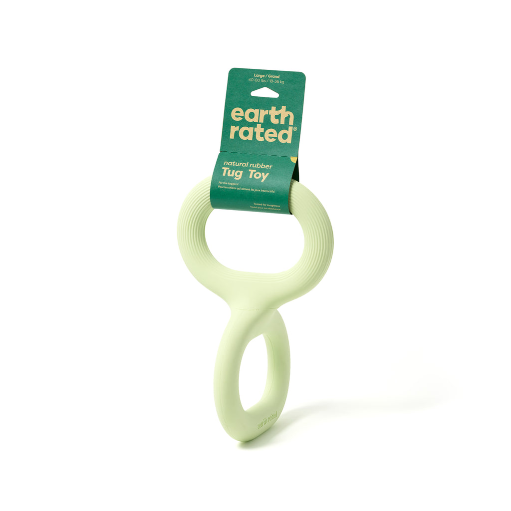 Thoughtfully designed using responsibly sourced natural rubber, with a playful shape and modern look. Its unique design makes it durable and safe. The Earth Rated tug toy is sure to spark spontaneous play sessions for any pup or person within its reach.