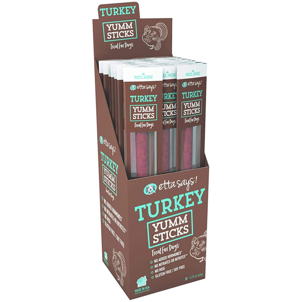 Your pal will sit pretty for the delicious taste of Etta Says! Turkey Yumm Sticks Dog Treats. These single-protein treats have nothing but the good stuff for your pup. They’re made with all-natural ingredients, including tasty turkey and brown sugar. The high-quality turkey is sourced from American farms, and it’s the number one ingredient in this scrumptious snack. This grain-free recipe is also made without any nitrates, nitrites or MSG. Just a natural, flavorful reward for your pal to enjoy!