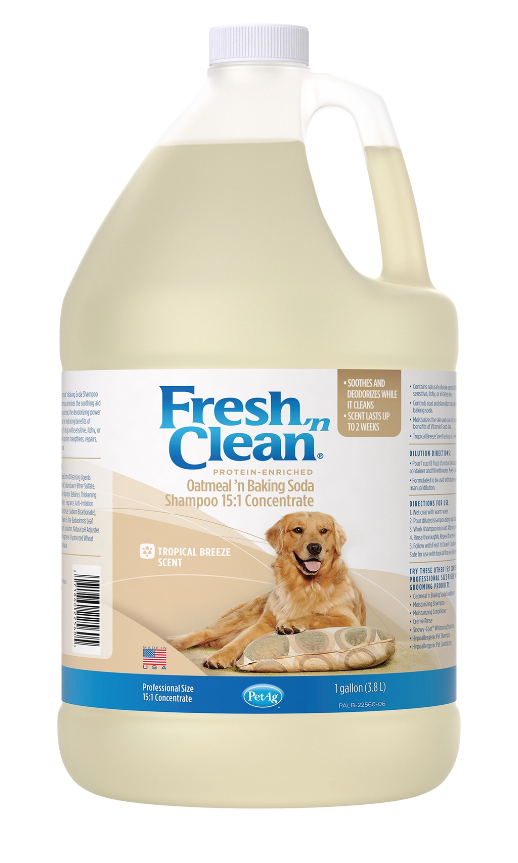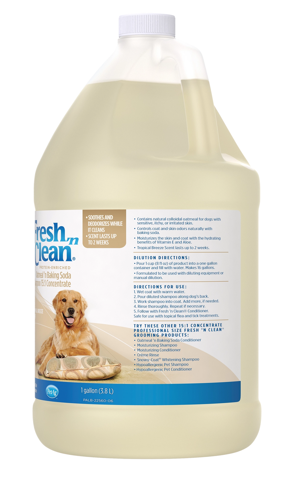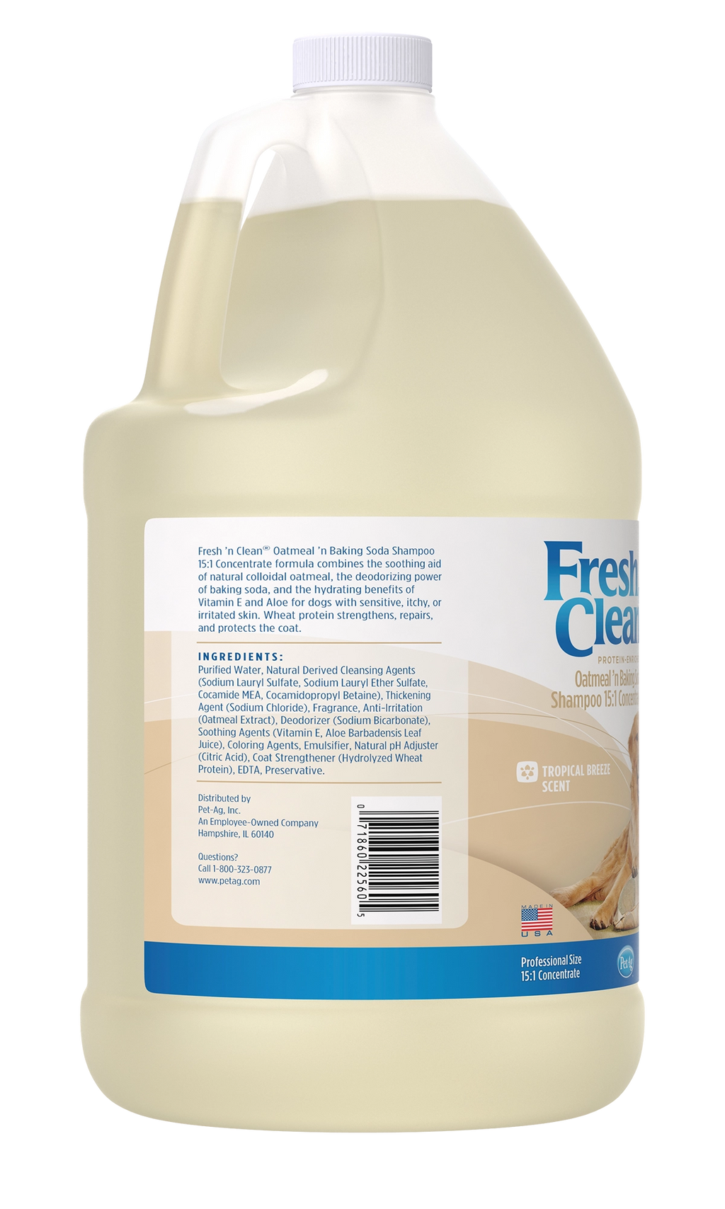 The preferred choice of groomers, Fresh ‘n Clean Oatmeal ’n Baking Soda Shampoo is ideal for dogs with dry, itchy and sensitive skin. The natural soap-free formula is 95% plant-derived and combines the soothing qualities of colloidal oatmeal with the odor-controlling power of baking soda. Infused with protein, vitamin E and aloe, this shampoo repairs and moisturizes for a healthy, manageable coat. The 15:1 concentration saves on shipping costs with more washes per bottle. And the Fresh ’n Clean signature, long-lasting fragrance keeps your dog smelling fresh up to two weeks.
