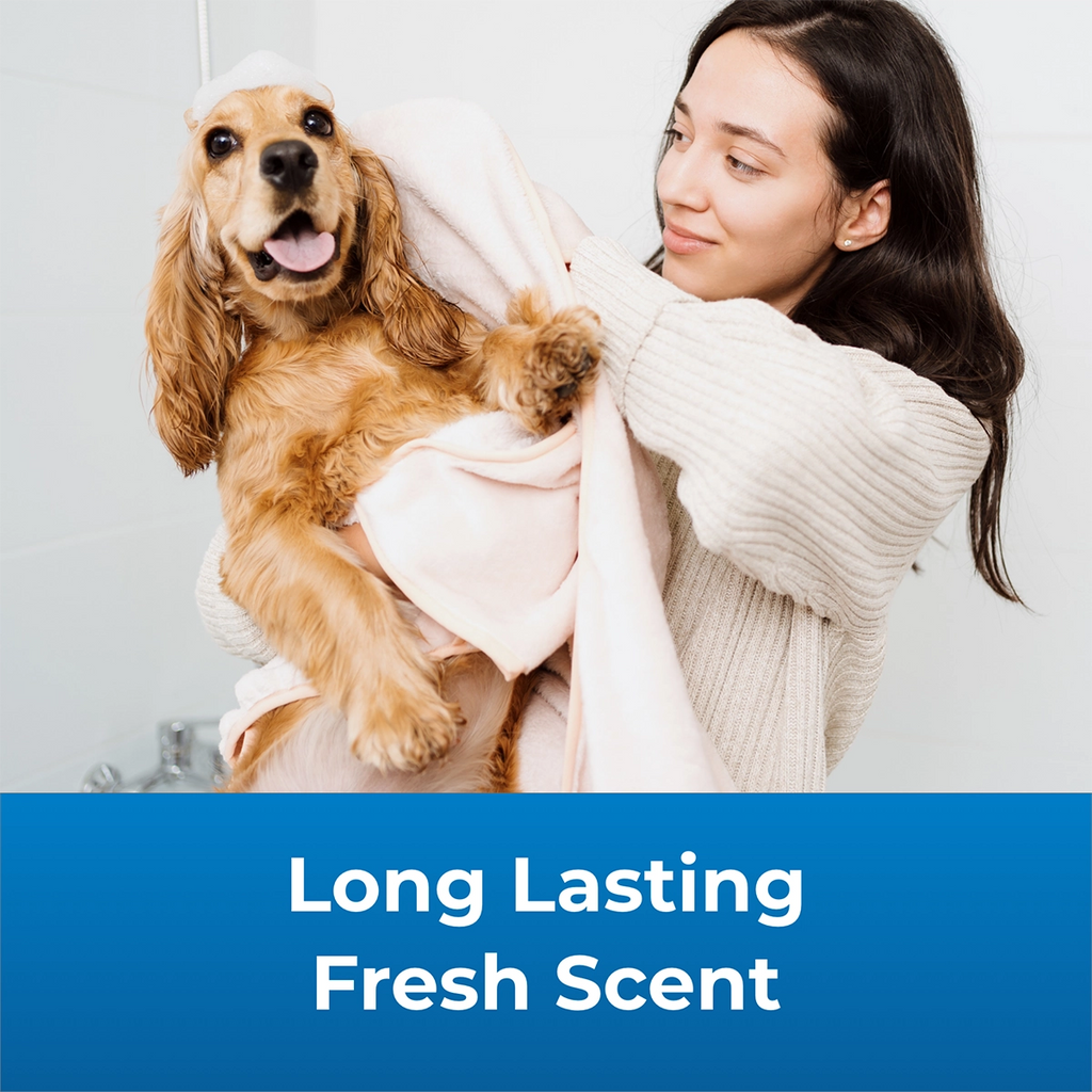 Crisp Linen Scented Shampoo helps soothe dry, irritated skin while moisturizing with Vitamin E and Aloe Vera. Wheat protein strengthens repairs and protects the dog’s coat. Crisp Linen Scented Shampoo keeps the dog smelling Fresh 'n Clean® longer with a scent that can last up to two weeks!