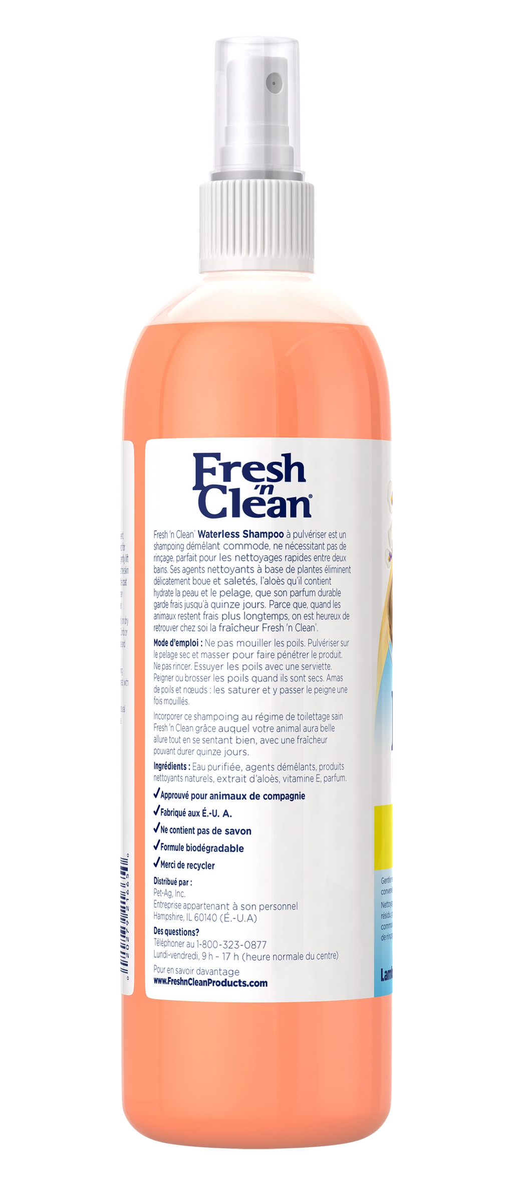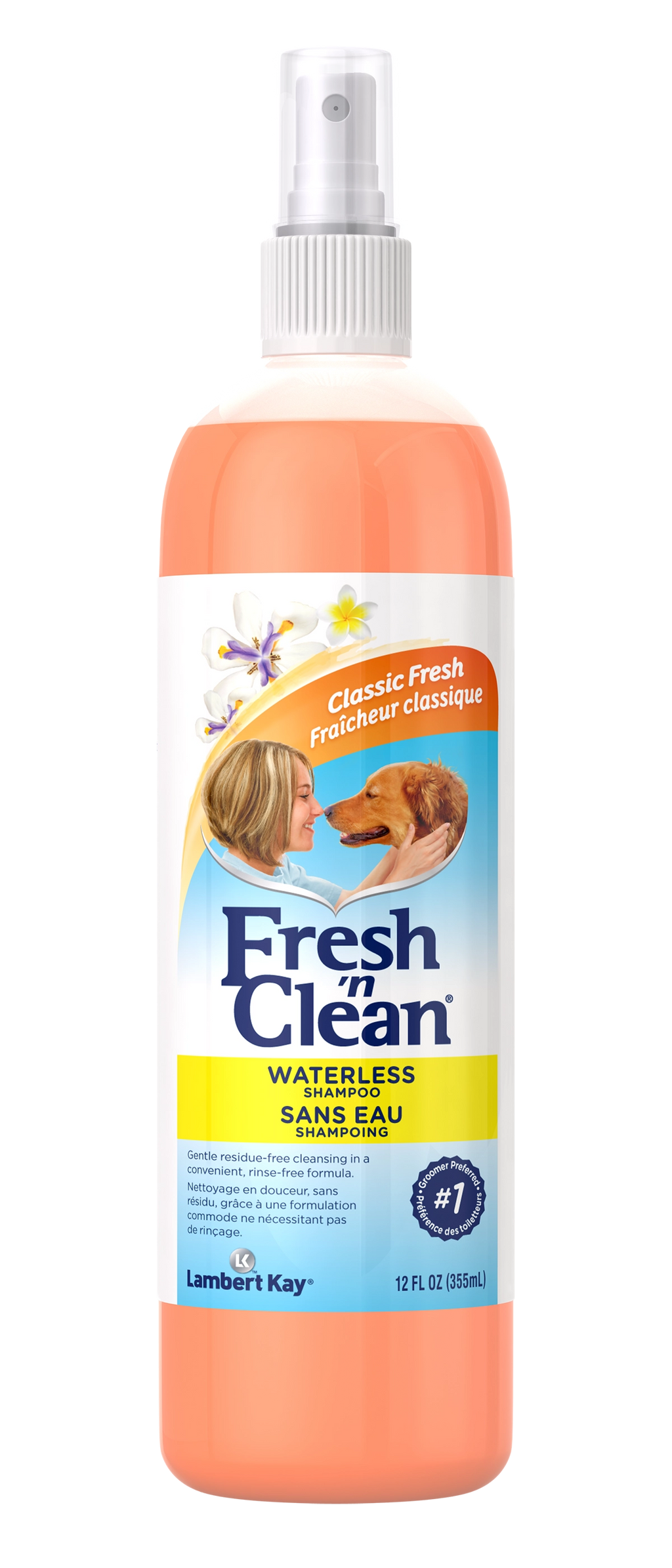 Give your dog a quick, rinse-free cleanup between baths with Fresh ’n Clean® Waterless Shampoo. The soap-free formula uses natural plant-based cleansing agents to gently lift away dirt and grime from your pet’s skin and coat without the need for water. Made with skin-soothing Aloe vera extract, it also works to release mats and tangles. It’s the perfect solution to keep your pet clean when you’re away from home. The Fresh ’n Clean signature, long-lasting scent keeps your dog smelling fresh up to two weeks.