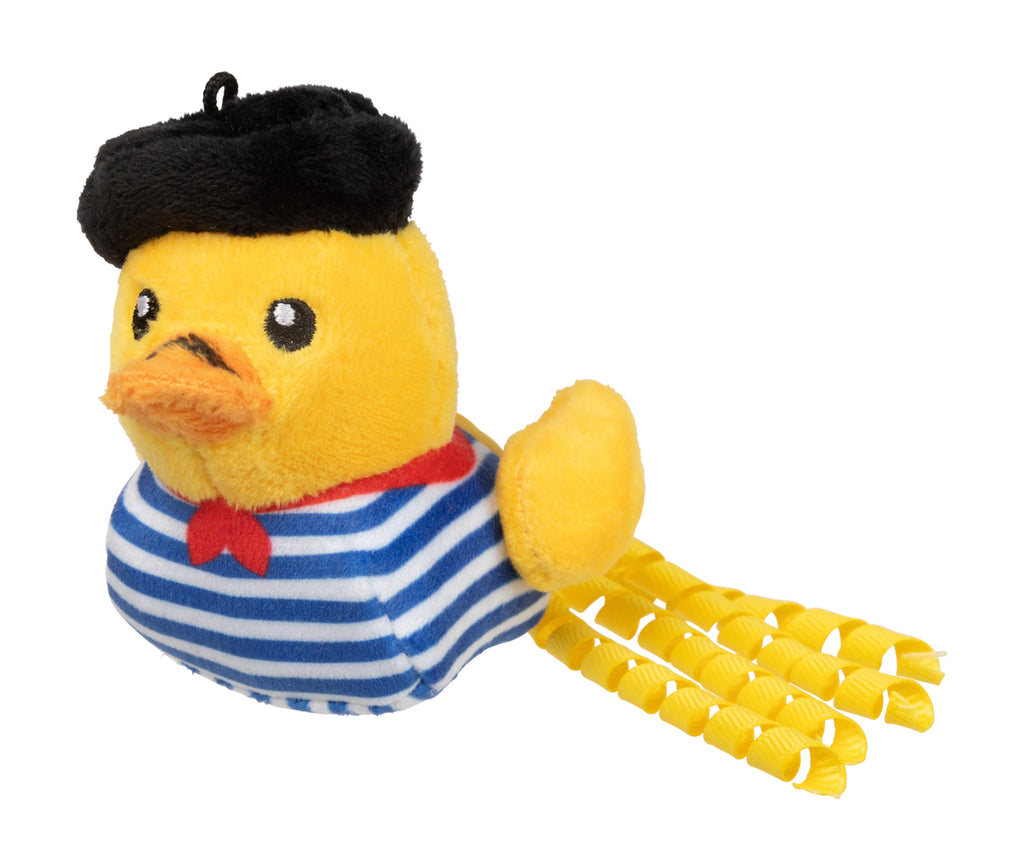Ooh la la! Timotheé Chalaquack has made his grand entrance, ready to charm your cat. With his beret, moustache, crinkly body, and ribbon tail, this Parisian plush is perfect for hours of swatting and pouncing fun!