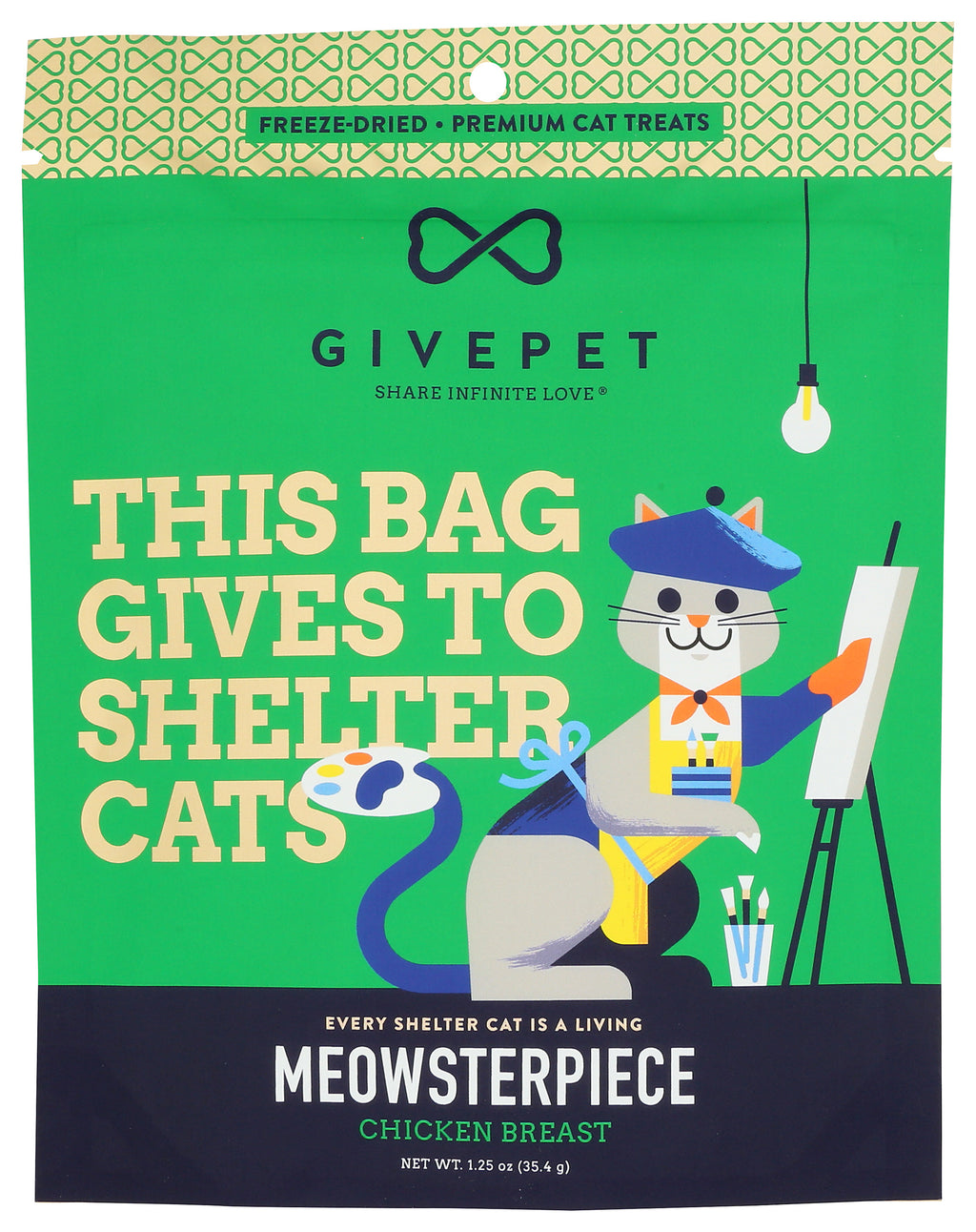 1.25 oz bag of freeze-dried cat treats with one ingredient - chicken breast. Designed for even the most finicky of cats! A perfect treat for your favorite feline! Made in the USA with no artificial ingredients, flavors or preservatives.