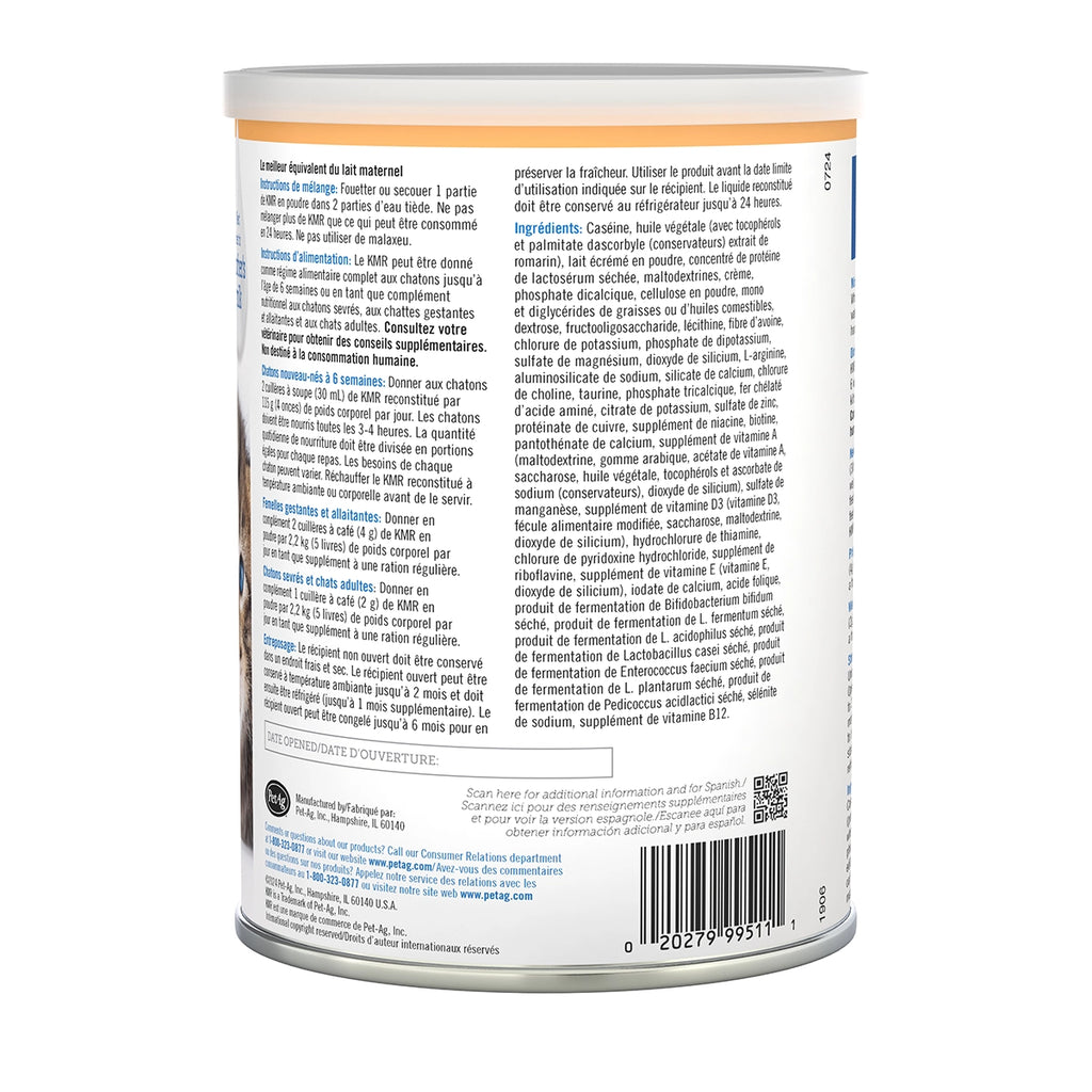 When mom can’t nourish them, KMR® can. Scientifically the next best to mother’s milk, KMR® provides all the nutritional elements necessary for kittens needing supplemental feeding or adult cats requiring a source of highly digestible nutrients. KMR is fortified with key vitamins and minerals plus taurine, an essential amino acid required for proper eye and heart development. The powder formula is especially beneficial for developing digestive systems, because it contains prebiotics plus probiotics – a source of live, naturally occurring microorganisms. Make sure your kitten grows up healthy, vital and strong with KMR – the #1 selling kitten milk replacer from PetAg®.