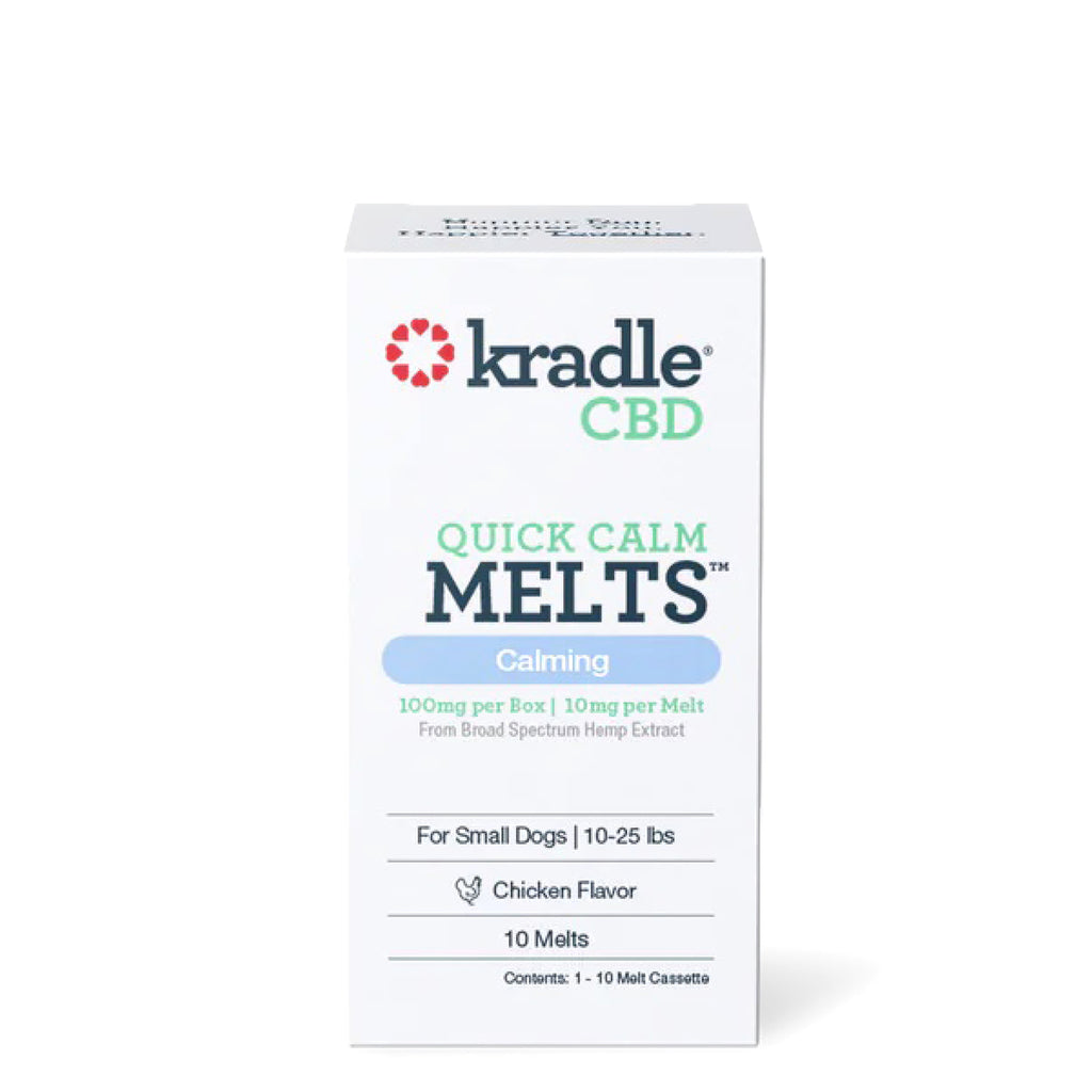 From fireworks, to a visit to the groomers, to an airplane ride; Kradle® Quick Calm Melts are the perfect solution for any sudden stressful situation your dog may encounter. Our Melts contain an extra dose of our BotaniTek™ Calming formulation to naturally calm your dog quickly. Simply place the Melt strip on your dog's tongue and watch it — and the stress — dissolve quickly.