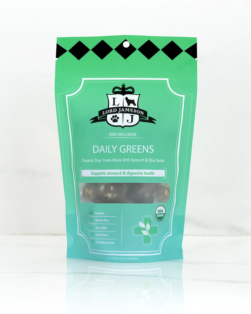 Lord Jameson organic dog treats use 100% USDA certified organic and human-grade ingredients that include real fruits, vegetables, plant-based proteins, herbs, and botanicals. All of our treats are gluten-free certified making them a great option for dogs with or without a gluten intolerance or sensitivity. Lord Jameson is great for picky eaters, all breeds and life stages. All products are free of fillers like wheat, corn, soy, dairy, artificial flavors, colors, and preservatives. We are non-GMO and preservative-free! We have an 18-month shelf life. We proudly make our treats in our very own kitchen in Boulder, Colorado.