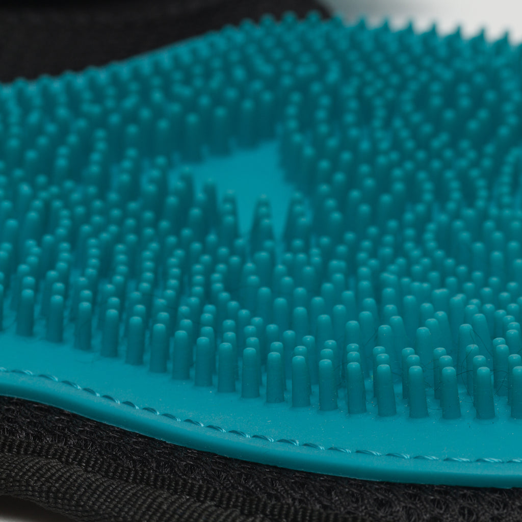 The microfiber side is perfect for bath time. Adding soap directly to the glove will help generate a healthy lather while scrubbing your mutt. Reverse the glove and massage out all of the mess with the super soft silicone spikes.
