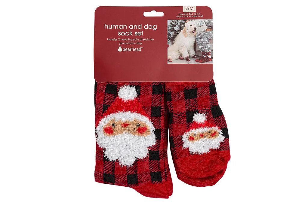 Pearhead Human and Dog Sock Set Buffalo Check Santa