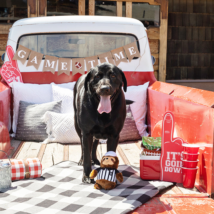 Game day is the best day! Our “Rufferee” plush toy is perfect for playtime, anytime. Made with a super loud squeaker and stuffed with fluff, there won't be any false starts when playing with this toy.