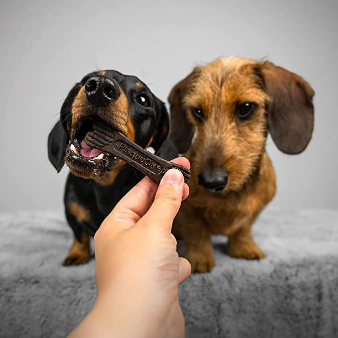 The Mini Dental Care Bones contain 20 bones per bag and the dosage for dogs 10 lbs. and over is one bone daily. For the smaller dogs, our Mini Dental Care Bones are perfect to break in half for daily dosage.