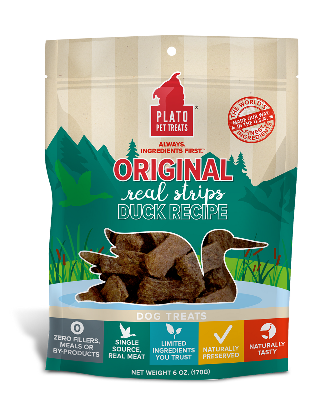 - Naturally tasty dog treats that feature duck as the first ingredient.