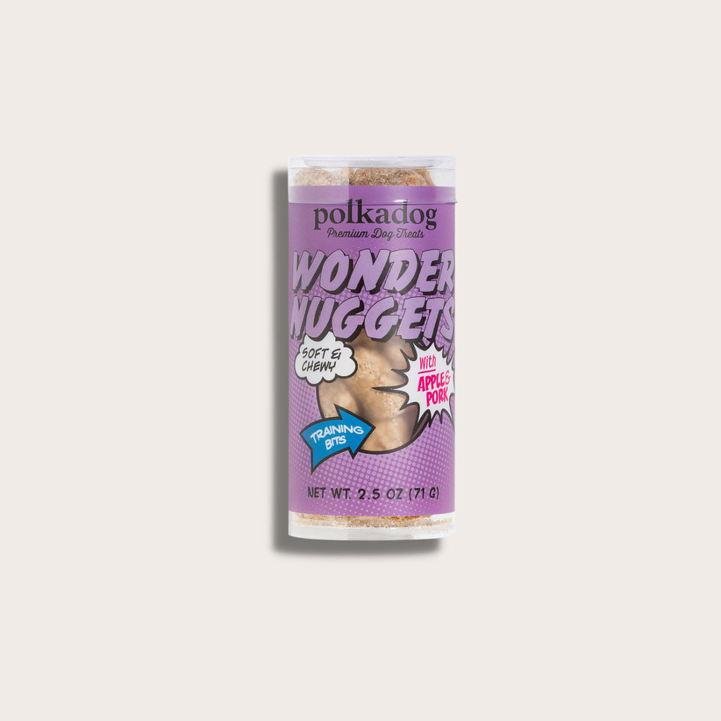 Succulent buttery pork chop, we will never let you down. We will not ask what you do for us. What can we do for you? We will not forget you crave apples both tart and sweet, so juicy, so bright. O Pork! O Apple! Pork & Apple Wonder Nugget you shall be! Pork, at US farms we will find you, and in our Boston Fish Pier kitchen we will craft you, fulfilling our duty as makers of the finest pet treats in all the lands of the earth. O soft gentle bites: the Dog howls with gratitude!