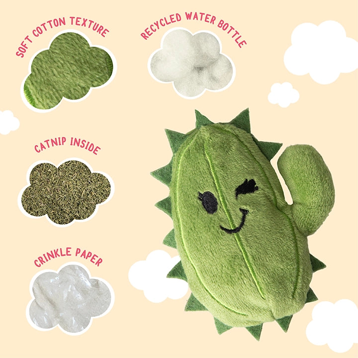 Kitty Chloe (the Cactus) is winking her way into all of our Kitty's hearts with Crinkle and Catnip. Your Kitty will have endless fun with this fun cat toy. Toy is made from recycled water bottles.
