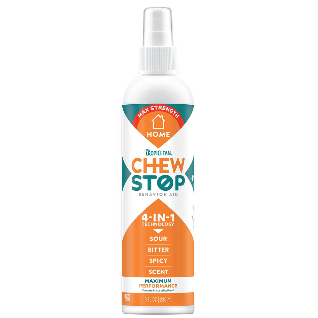 TropiClean Chew Stop Home Spray is the perfect solution to protect your home and furniture! Designed to prevent destructive chewing on household items such as furniture, shoes, and cords, this spray helps keep your space intact. Its natural, non-toxic formula uses flavors that pets dislike, encouraging them to avoid unwanted chewing behaviors. Easy to apply and safe for everyday use around your home, this spray offers gentle, effective deterrence.