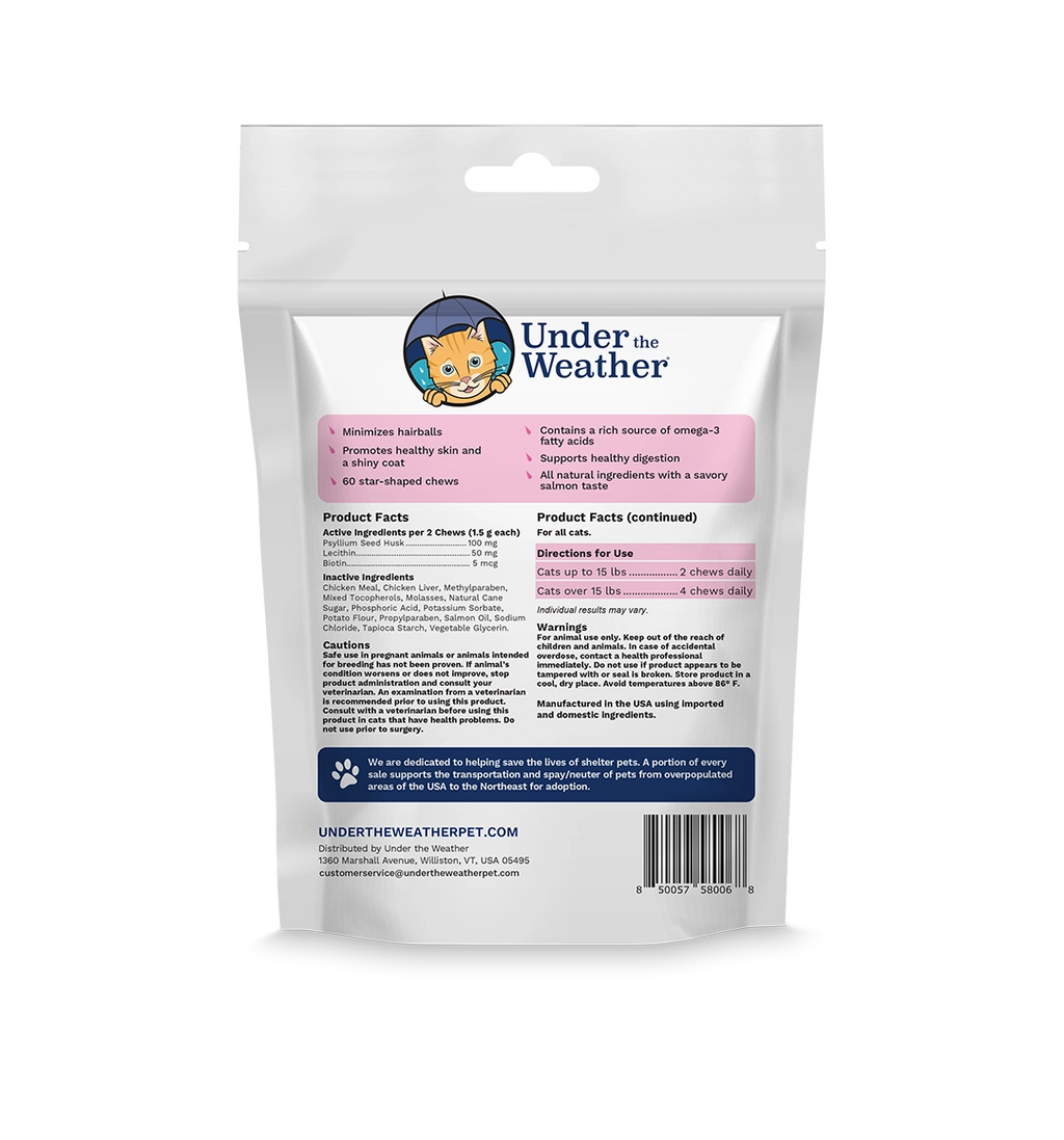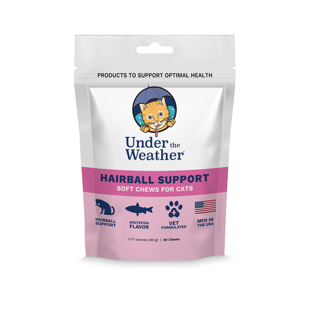 Unfortunately, kitties have to deal with a problem that dogs don’t—hairballs. Under the Weather Hairball Support Soft Chews Cat Supplement contains real, Alaskan salmon oil, which is naturally packed with omega-3 fatty acids to support healthy skin and a shiny, lustrous coat. It also contains psyllium seed husks that’s loaded with fiber to support easy hairball elimination. These soft chews are manufactured in Vermont without any corn, artificial flavors or dyes and have a purr-worthy whitefish flavor your kitty will go head-over-tail for!