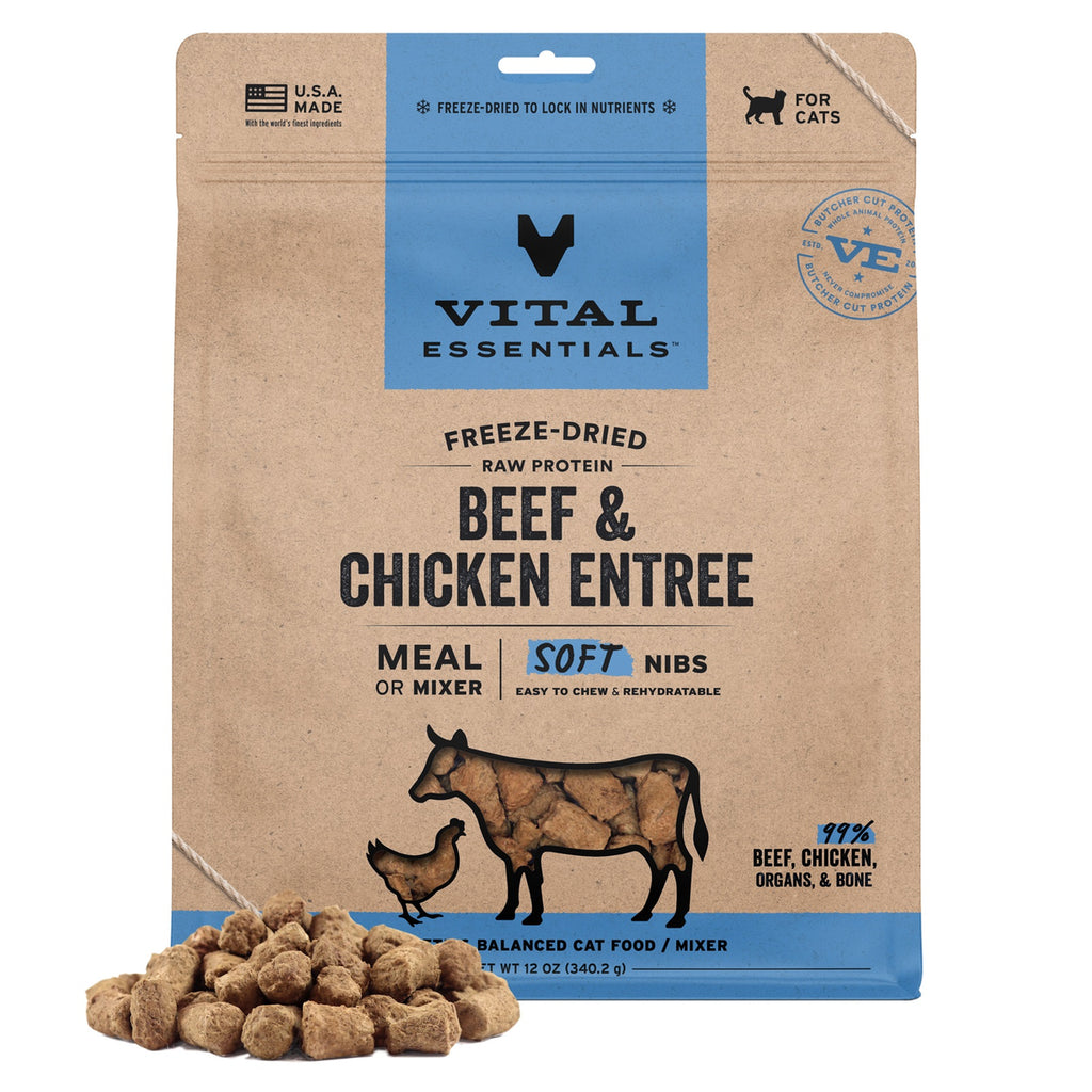 Vital Essentials Freeze-Dried Raw Beef & Chicken Entree & Mixer Cat Food Soft Nibs, 12 oz