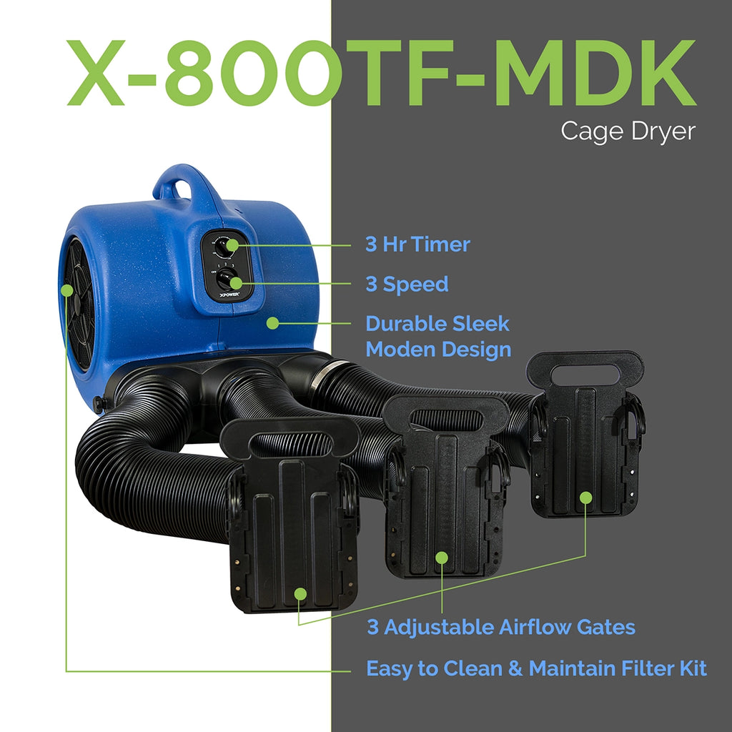 If you're not taking as many appointments as you would like as a small sized operation, the Clean Groom Deluxe also includes the best-selling X-800TF cage dryer, which is equipped with a timer that fits AKC S.A.F.E standards, as well as a multi-cage drying kit that allows you to dry up to three cages—both of which help you manage even more appointments efficiently.